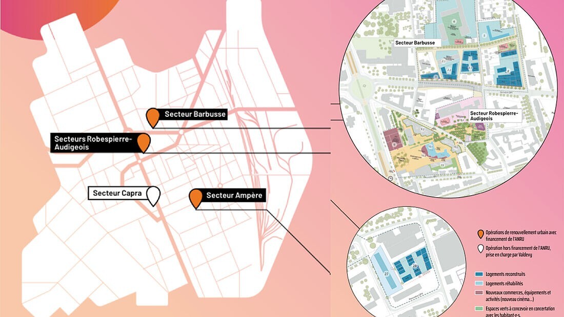 Situés à proximité des nouvelles infrastructures de transport qui ont vu le jour ces dernières années, les quartiers concernés par le Nouveau Programme de Renouvellement Urbain de Vitry-sur-Seine sont au nombre de 3. Il s’agit des secteurs Robespierre – Audigeois, Barbusse et Ampère.