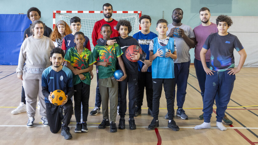 14 février, au gymnase Éluard : 14 préados du centre Robespierre rencontrent 9 jeunes de l’IME Suzanne-Brunel, établissement qui propose, entre autres, un accompagnement et un encadrement éducatif et scolaire aux enfants présentant un retard intellectuel.