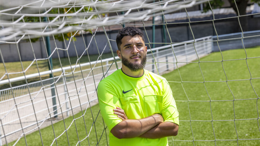 En arrivant au rendez-vous au stade Arrighi pour l’entretien fixé, Aïmen Gader est comme un poisson dans l’eau. Aussi à l’aise sur le terrain que devant la caméra, le jeune homme de 23 ans maîtrise parfaitement les exercices de communication. Regard fixe, flot de parole assuré, il a même revêtu sa tenue d’arbitre avec laquelle il officie chaque week-end. “Je peux repartir avec, j’habite vraiment juste en face”, plaisante cet enfant du quartier du 8-Mai-1945. Un jeune homme bien dans ses crampons, étudiant en Staps avec l’objectif de devenir professeur d’EPS, qui a toujours vu dans la pratique du sport les conditions de son épanouissement.