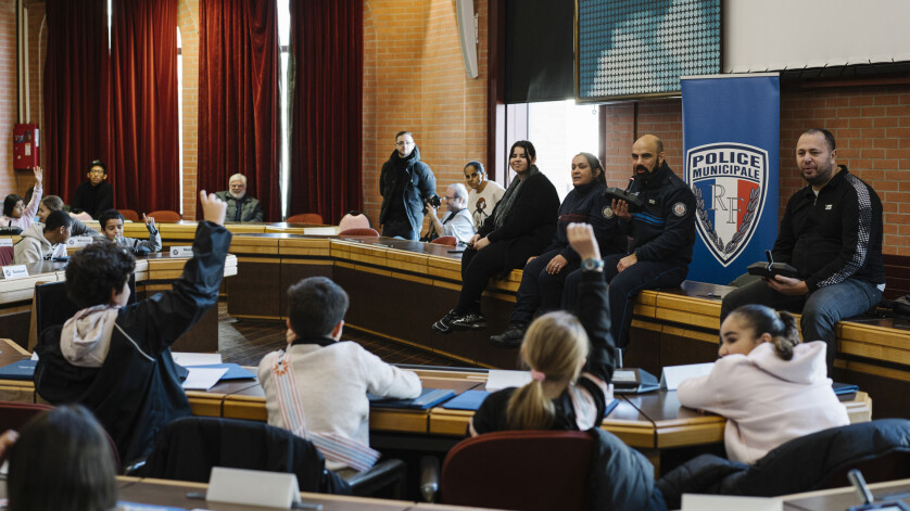 En cette matinée, deux policiers municipaux, Alain et Khadija, sont venus échanger avec l’assemblée. Devant une forêt de mains levées, ils ont répondu aux multiples questions des enfants. « Est-ce qu’il existe des prisons pour mineurs ? » « Avez-vous déjà arrêté un policier ? » « Utilisez-vous des armes ? »… Avec patience, les deux agents ont pris le temps de répondre à toutes ces interrogations, insistant sur les missions de la police municipale et l’importance du dialogue avec les habitants.