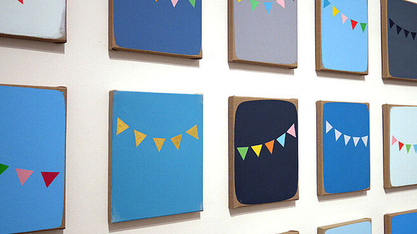 La série « Célébrations », avec ses fanions colorés, symbolise la joie des fêtes tout en évoquant la mélancolie et la précarité des moments partagés.