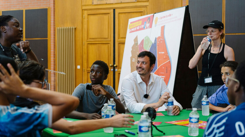 Quelques tables plus loin, le jeu laisse place à un échange libre. Imad, 15 ans, maillot floqué Balzac sur le dos, souhaite parler de son quartier. Il aimerait qu’un lieu pour les jeunes de 15 ans et plus y soit aménagé, que l’offre de commerce et de transport s’améliore, “surtout pour les personnes âgées isolées”, ou encore que la ville participe au financement du passe Navigo…