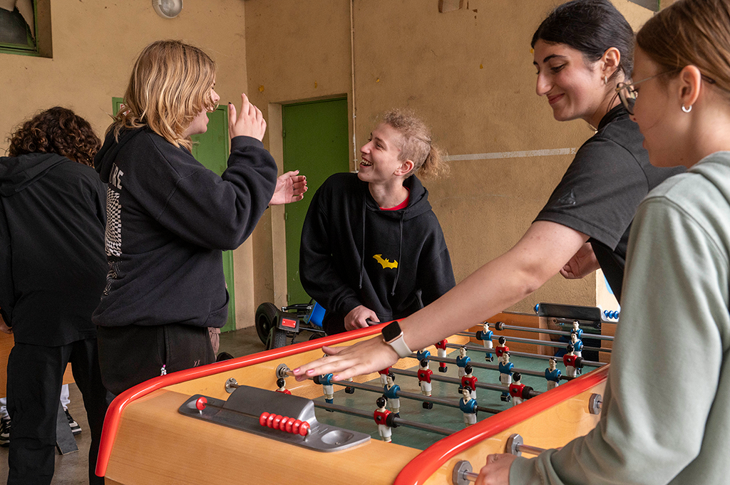 « Mister wake up ! » lance une jeune fille dans un anglais approximatif à un garçon tenant mollement les poignées du babyfoot. Ecarquillant les yeux, l’étonnement laisse rapidement place au sourire sur le visage du jeune homme qui se replonge dans la partie.