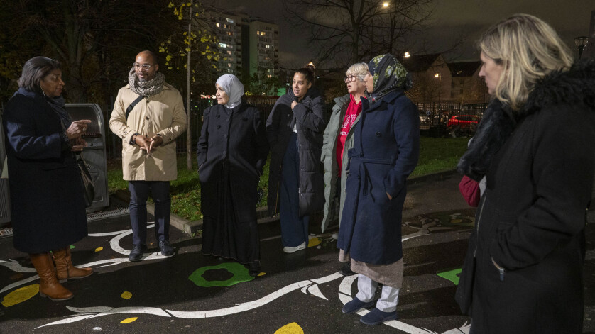 “Ici”, c’est le hall de l’immeuble au 6, avenue de la Commune-de-Paris, géré par le bailleur Valdevy. Hamid, locataire de l’immeuble, remarque : “La peinture de l’entrée a été refaite : avant, c’était couleur bois foncé, c’était beaucoup plus sombre… Là, ça éclaircit !” Il précise toutefois qu’il aurait “préféré qu’il y ait une réfection totale du sol”. Une autre résidente sourit : “Ça fait du bien, ça ajoute de la couleur !”