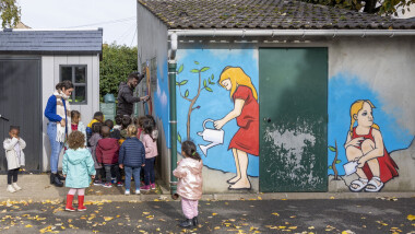 Le street-artiste vitriot Antonin Rêveur était l'homme de toutes les attentions, alors qu'il réalisait une fresque dans la cour de l'école maternelle Langevin.