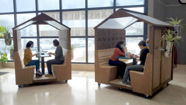 Depuis 2020, la Ressourcerie du Spectacle, installée au Crapo, élabore les nouvelles installations de la bibliothèque Nelson Mandela. Cabanes, bancs, pergola… Des îlots de tranquillité pour le plaisir des petits et des grands.