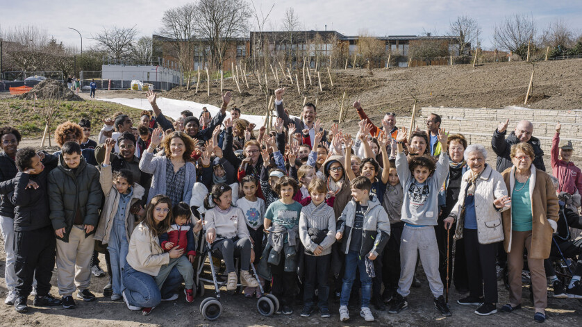 “Qui veut la grande pelle ?” lance le maire parmi une nuée d’enfants. Plusieurs petites mains se lèvent : la terre et la boue ne rebutent visiblement pas. Sous un soleil printanier, l’édile a rejoint des écoliers du groupe scolaire Henri-Wallon, des résidents de l’EHPAD des Lilas et des enfants de l’institut médico-éducatif (IME) Suzanne-Brunel pour une plantation collective d’arbres sur le futur parc des Prairies du Fort.